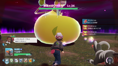 最後に挑戦したのが暴走メガシンカポケモン「メガウツボット」との戦闘だ。本作ではストーリー中に暴走メガシンカポケモンがボス戦のような形で登場し、よりアクション性が押し出された戦闘を楽しめる。
