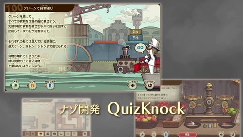 本作のナゾ開発にはテレビやYoutubeで様々な活躍をしている知的エンタメ集団のQuizKnockが携わっており、本作のナゾも解きごたえバツグンとなっている。