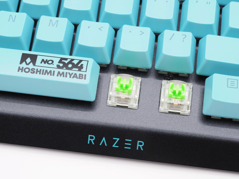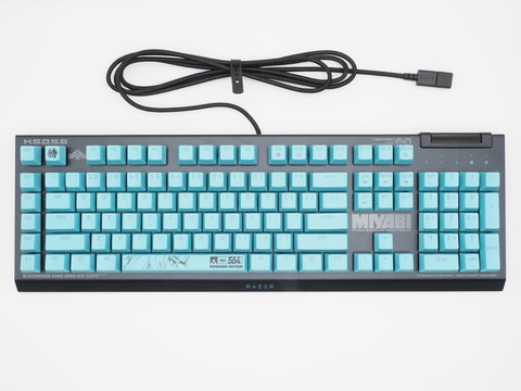 まずはゲーミングキーボード「BlackWidow V4 X Zenless Zone Zero Edition」から見ていこう。本製品は「BlackWidow V4 X」をベースに、星見雅仕様のトッププレートとキーキャップにカスタマイズした特別モデルだ。