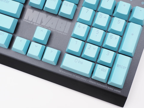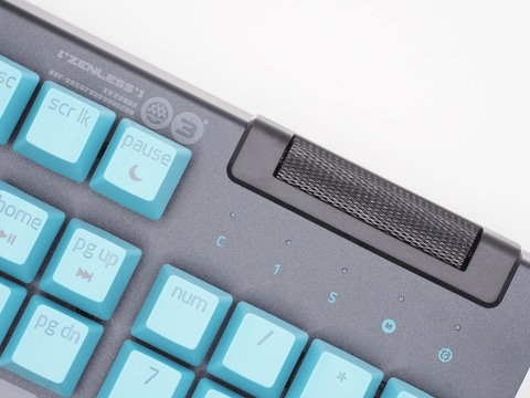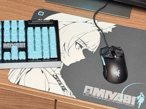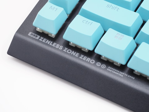 トッププレートには「H.S.O.S.6(対ホロウ事務特別行動部第六課の略称)」や「Welcome to New Eridu」といったワードが散りばめられているほか、キーキャップは星見雅を彷彿とさせるライトブルーとなっており、スペースキーには星見雅の横顔、ESCキーには「特」の文字がプリントされている。「ゼンゼロ」らしくストリート風なデザインに仕上がっていて、非常にカッコいい。
