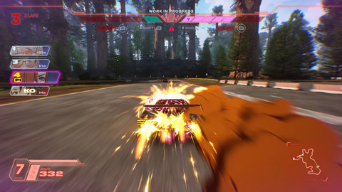 全体的な操作感としては、車両の操作についてはあまり考えなくても普通に走行できる。一方でツインスティックによるドリフト操作は慣れが必要であるため、同じコースを何度か走り込み、どのくらいのスティック操作でどのくらいドリフトするかを見極めるのが重要になりそうだ。
