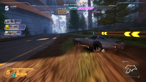 本作ではオーソドックスなレースゲームの要素に加えて、ドリフト操作が簡単に行なえる「ツインスティック」システムを採用。コントローラーに備える左アナログスティックは一般的なレースゲームと同様に左右移動を担うが、カーブを曲がる際などに右アナログスティックを同時に操作すればドリフトできるため、比較的スムーズにドリフト操作が行なえる。もちろんドリフトのタイミングが悪ければ曲がり切れないし、ドリフトしすぎて壁に激突してしまう場合もあるので、操作の慣れは必要だが、レースゲームにあまり馴染みのない人であっても、比較的スムーズにドリフトできそうなシステムだと感じられた。