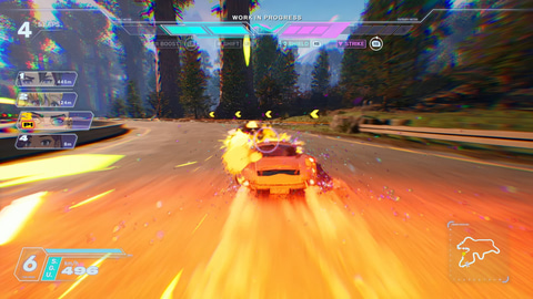本作に登場する車両はセミオートマを搭載しているとのことで、画面上に表示されるタイミングで意図的にギアを上げる「アクティブシフト」操作を行なうことで、加速を維持しながらよりスムーズにSYNCゲージを溜められるようになっている。そしてSYNCゲージを一定数溜めれば一気に加速するブーストが利用できる。