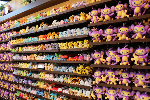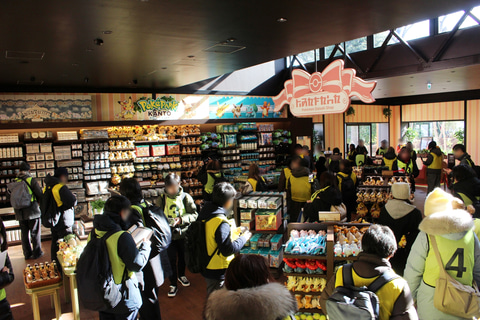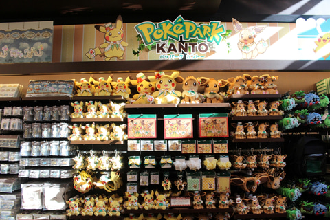 「ポケモンだいすきショップ」は、たくさんのポケモン関連グッズを販売しているグッズショップだ。注目はやはりポケパーク カントーのオリジナルグッズ群。ぬいぐるみやアクセサリー、お菓子などのほか、カチューシャやキャップなど身に着けることでポケモンになりきれるグッズもあり、ここで買い物をして気分を上げてから入場するのもアリだ。