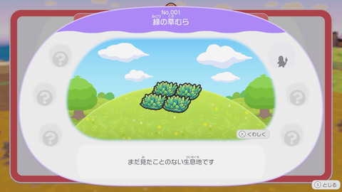 他にも「生息地ずかん」ではその生息地の作り方や出現するポケモンの種類が、「ポケモンずかん」ではともだちとなったポケモンの「とくちょう」や様々な好みの傾向を知ることが可能だ。
