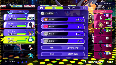 これにより「トレーニングモード」で調整ができる「ワザ」「性格」「能力ポイント」の3つがポケモンのステータスに影響を与える部分となるので、既存作品よりもかなり気軽に育成を楽しめる形となっている。