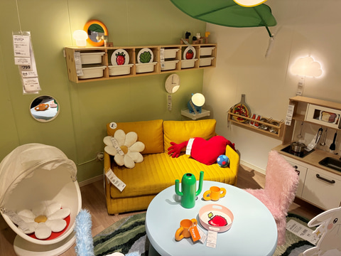 表情豊かで、エネルギーにあふれるピカチュウをイメージしたルームセットです。イケアのキッズ商品を中心に、スウェーデンらしいキノコや葉っぱのモチーフを取り入れた商品を組み合わせることで、深い森の雰囲気を演出しています。ルームセットのデザインには社交、休息、創造、遊びの要素を備えたオープンなレイアウトを採用しました。(プレスリリースより引用)