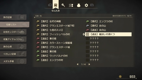 手間のかかった石版のかけら探しについても、メニューの「せんれき」タブ内にある「石版リスト」に、入手状況や入手場所などが記録されるようになった。何を入手済みで、何が不足しているのかをいつでも確認できるのは非常にありがたい仕様だ。