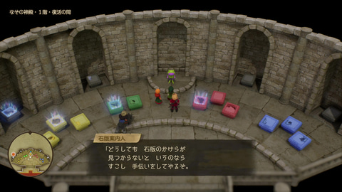 さらに、現時点で入手可能な石版のうち、フィールドなどに落ちているものは視覚的にわかりやすく表示されるようになっている。万が一取り忘れがあった場合でも、神殿の「石版案内人」が所在のヒントを教えてくれるなど、探索面のフォローも手厚い。