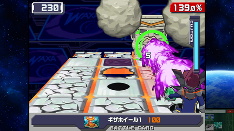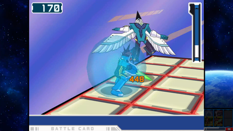 そして「流星のロックマン」を語る上で、それまでの「ロックマン」シリーズ作品にはない“独自のバトルシステム”は外せない要素の一つだ。流星シリーズでは、エグゼシリーズから続く「バトルカード(エグゼではバトルチップ)」を用いたカードゲーム的なコンボ要素を取り入れたアクションをベースとしながら、3D表現での立体的なフィールドバトルが繰り広げられる。