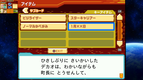 スタート画面の待ち受けキャラクターは自由に入れ替えることができ、早期購入特典で入手できるものを含むと「ロックマン」、「スバル(私服)」、「ウォーロック」、「ミソラ」、「ルナ(委員長)」の5名を確認できた。特にミソラと委員長はファンの間でも長らく愛されているキャラクターなので、新規ボイスで喋ってくれるだけで歓喜する方も多いだろう。