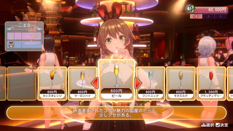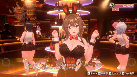 本作では、バニーガーデンというお店で、キャストの女の子と仲良くなっていくのが目的。高い物を注文するなどすると好感度が上がりやすいので、こまめに通ってお金をたくさん使おう。