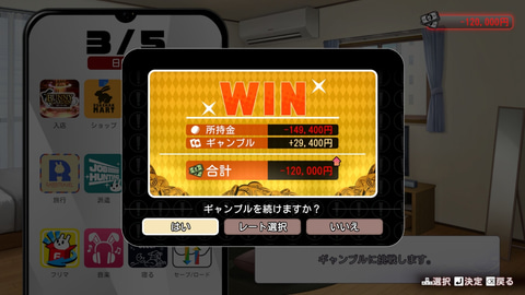 ただ、もちろん負けることもあり、その場合はお金が減るので、やりすぎは禁物。基本的には、どうしようもないときだけ挑戦するようにしよう。
