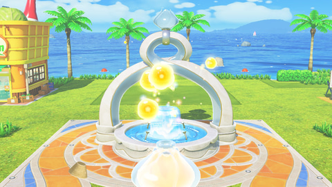「願いのふんすい」では、住民たちのお願い事を叶えるともらえる「気持ち玉」に応じて、様々なプレゼントや「プチ個性」などをアンロックできる。さらに1日に1回、住民たちからの募金でお金をもらうことができるので、ゲームをプレイするときは最初に訪れておこう。