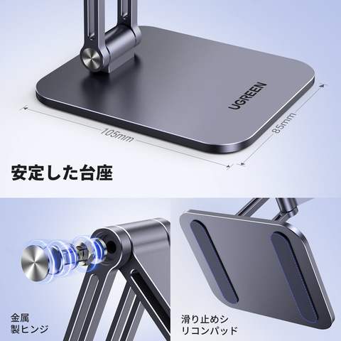 UGREEN スマホスタンド MagSafe対応 卓上用 マグネットスタンド 折り畳める iPhone16 15 14 13 12シリーズ対応 MagSafeケース対応 三関節調整 アルミニウム合金製 マグセーフスタンド
