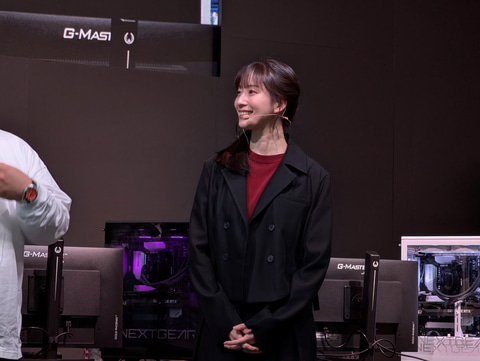 「NEXTGEAR」ブランドについて聞かれたまざー3さんは、事前のトークセッションで「色々と話を聞いた」とした上で、種類が豊富に用意されていて、ガッツリやりたい人はフルタワー型、迷ってる人にはミニタワー型があるとコメント。「どれもお買い得で驚く」と、「NEXTGEAR」のコストパフォーマンスの高さを強調した。