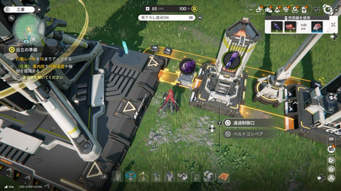 そして本作最大の特徴が「集成工業システム」の存在だ。名前だけ聞くと少し難しそうな印象を持ってしまうが、簡単に紹介すると“工業&自動化シミュレーションゲーム”のような要素で、工場を建設してゲームに必要なアイテムの量産を自動化する流れ全体を「集成工業システム」と呼称している。