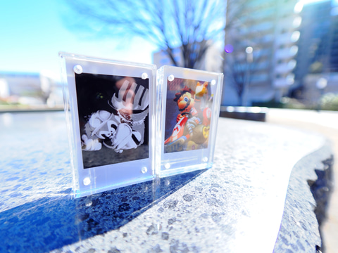 今回「キャラチェキ™︎」して気づいたのは、チェキプリント™︎の柔らかなコントラストがもたらす味わいにも魅力があるということだ。シャープネスの効いたパッキリとしたイメージとは対照的に、どこか郷愁を誘うような温かみのある輪郭と発色となる。画面上で見るスクリーンショットとはまた少し違った印象になり、これがまたエモい。