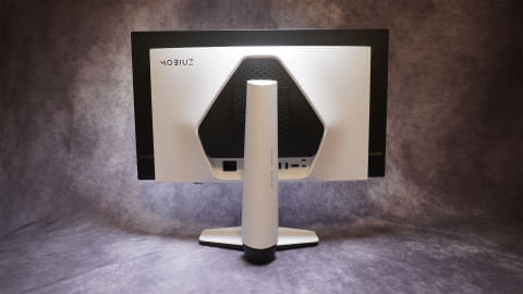モニター底面にはDownstreamのUSB3.2 Gen1 Type-Cと、USB3.2 Gen1 Type-Aが2ポートと、イヤホンジャックがある。MOBIUZシリーズでは珍しくスピーカーは搭載されていない。代わりにイヤホンジャックとeARCに対応したHDMIがあり、サウンドバーやホームシアターシステムなどを接続することで、臨場感あるサウンドを楽しめるようになっている。
