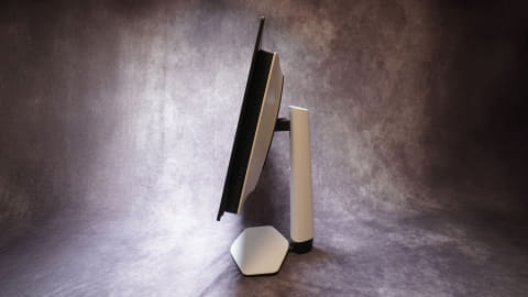 モニタースタンドのデザインもサウンドバーを設置した際に邪魔にならないよう、敢えてフラットにデザインされている。