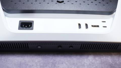 背面には2つのHDMI 2.1ポートと、DisplayPort 1.4ポート、USB Type-C(DP Alt Mode/90W給電)とUpstreamのUSB3.2 Gen1 Type-C、電源がある。電源はACアダプタなしのケーブルのみですっきりと配線できる。
