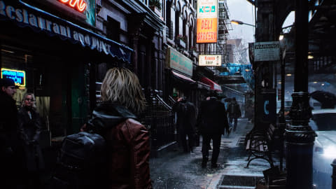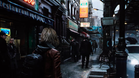 レオンの序盤に登場する、多種多様なサイネージや、車のライト、警察の非常灯など多くの光が混じりあう都会の夜での戦闘では、細部まで色鮮やかに表現された風景はもちろん、そんな光に隠れるように蠢くゾンビたちと逃げ惑う民衆の表情まで克明に描写される。
