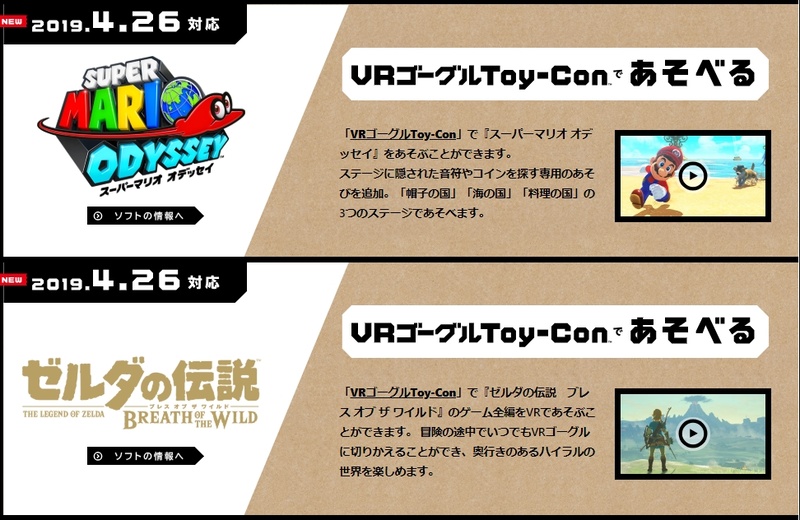 「ゼルダの伝説 BotW」と「スーパーマリオ オデッセイ」、「VRゴーグルToy-Con」への対応アップデートを配信開始