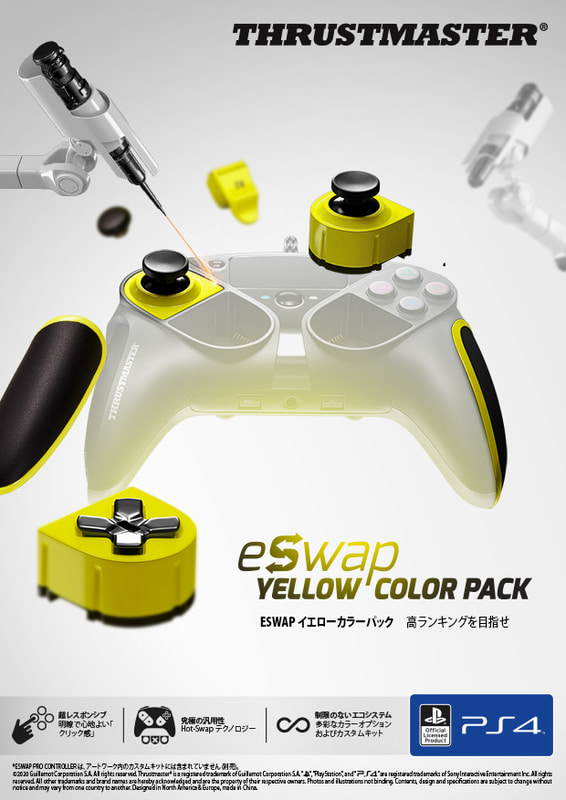 © 2019 Guillemot Corporation S.A.All rights reserved.Thrustmaster(R) は、Guillemot Corporation S.A. の登録商標です。「PlayStation」および「PS4」は、株式会社ソニー・インタラクティブエンタテインメントの登録商標または商標です。All rights reserved.その他、本書に記載の登録商標およびブランド名は、それぞれの所有権者に帰属します。本書に含まれるイラストには法的拘束力はありません。本書に含まれる内容、設計および仕様は、事前の通告なしに変更される場合があり、また、各国で異なる場合があります。