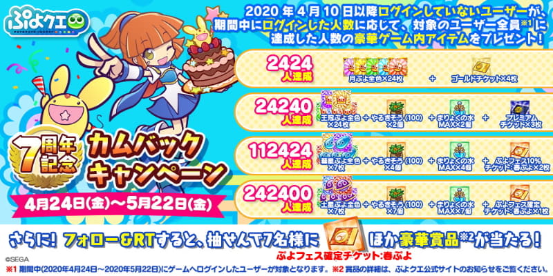 「ぷよぷよ!!クエスト」で「7周年カウントダウン セレクションガチャ」を開催