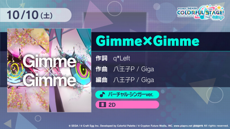© SEGA / © Craft Egg Inc. Developed by Colorful Palette / © Crypton Future Media, INC. www.piapro.net piapro All rights reserved.