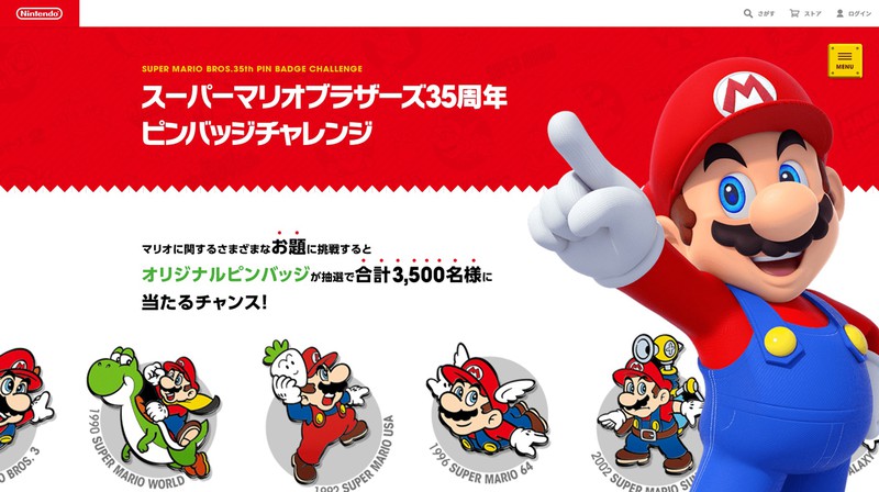 「マリオ」のお題にチャレンジして「ピンバッジ」をGET! 「スーパーマリオブラザーズ35周年 ピンバッジチャレンジ」開催