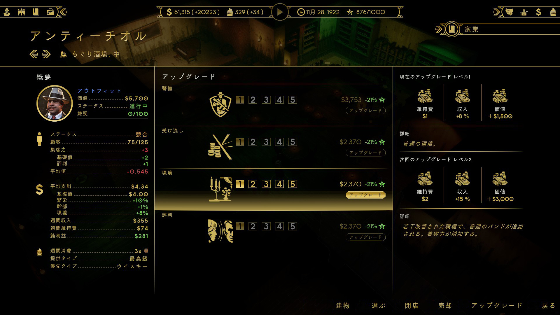 「Empire of Sin エンパイア・オブ・シン」、2人のボスやライバル派閥との戦争、警察への賄賂などゲーム情報を紹介