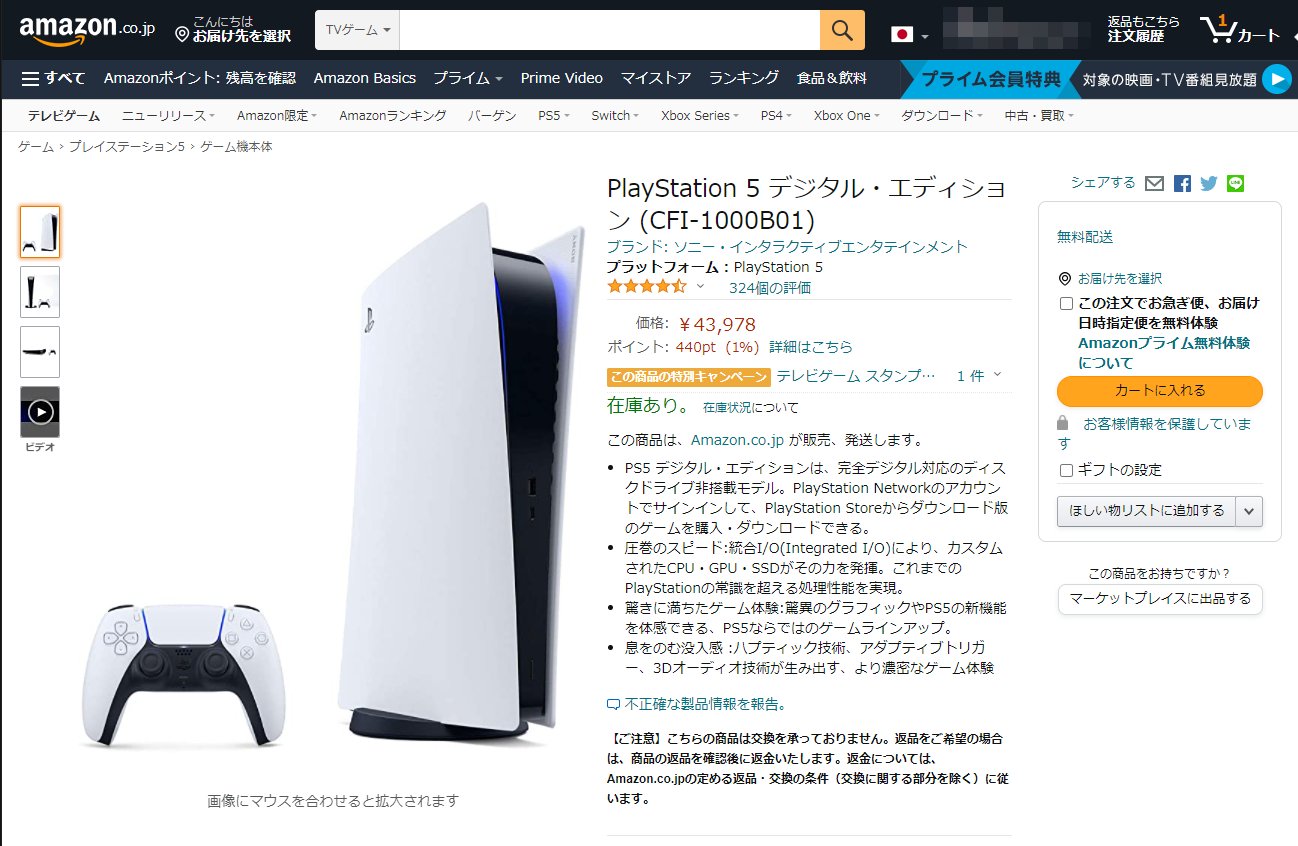 PS5、Amazonにて4月9日9時30分ごろより再販開始!