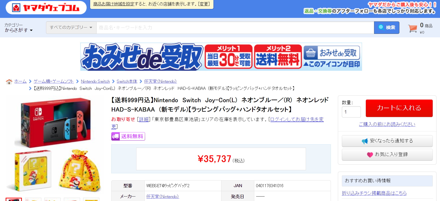 ヤマダウェブコム、Switch本体グレーの注文を再開