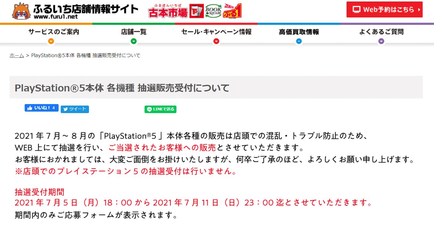 古本市場、7月・8月に入荷予定のPS5を対象とした抽選受付を開始