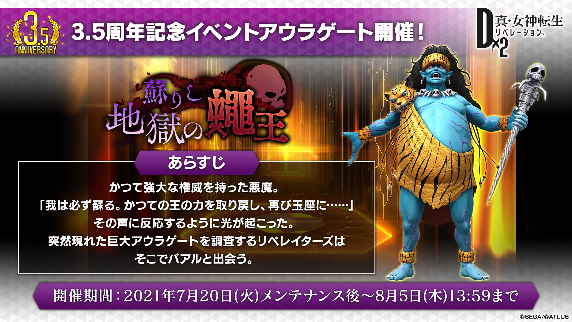 「D×2 真・女神転生リベレーション」3.5周年記念アプデでソロプレイコンテンツ「東京煉獄」を実装!