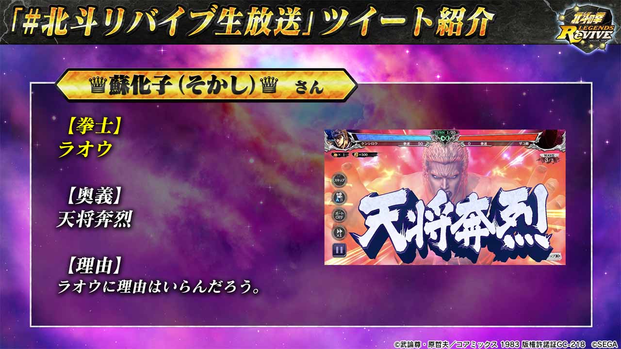 「北斗の拳 LEGENDS ReVIVE」9月13日に「2周年記念!公式生放送」を配信