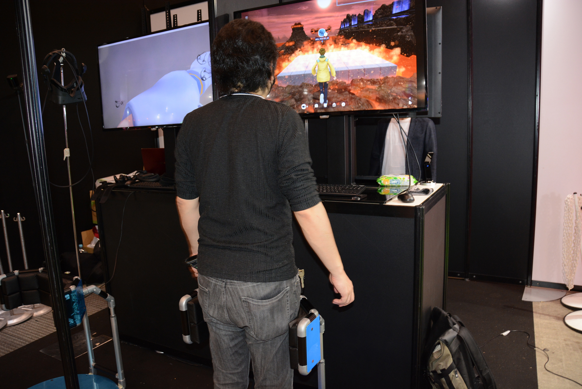 膝でセンサーを押すことでVR空間を"歩く"! VR用歩行装置「Crus-TypeC-DK1」を体験してみた!