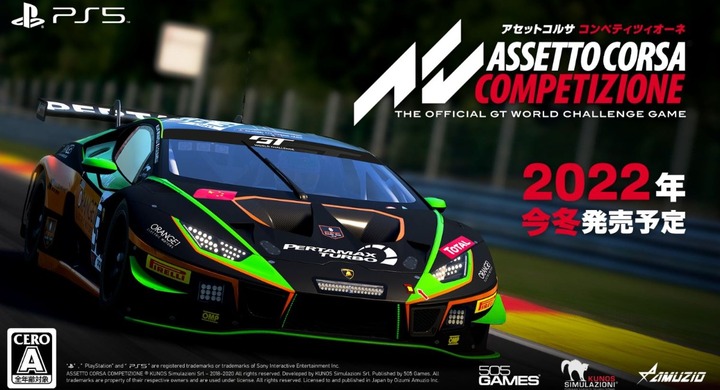 ASSETTO CORSA COMPETIZIONE (R) KUNOS Simulazioni Srl ? 2018-2020 All rights reserved. Developed by KUNOS Simulazioni Srl. Published by 505 Games. All trademarks are property of their respective owners and are used under license. All rights reserved. Licensed to and published in Japan by Oizumi Amuzio Inc.