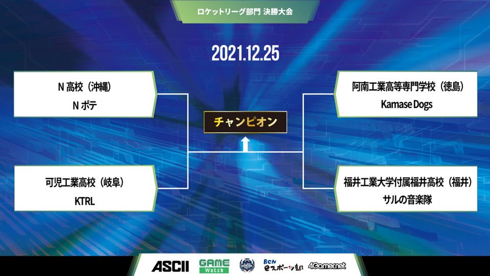 第4回全国高校eスポーツ選手権 「ロケットリーグ」部門、N高(沖縄)「Nポテ」が連覇達成(2/7)