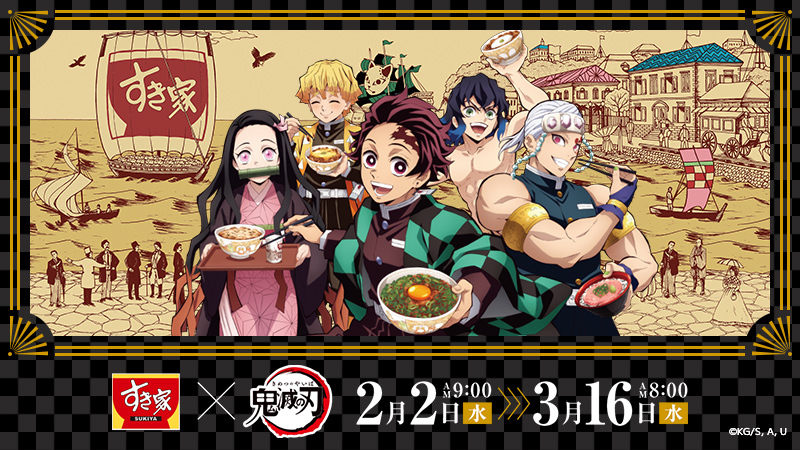 「鬼滅の刃」×「すき家」コラボ、2月2日より開催決定! 炭治郎たちが丼ぶりを手に登場