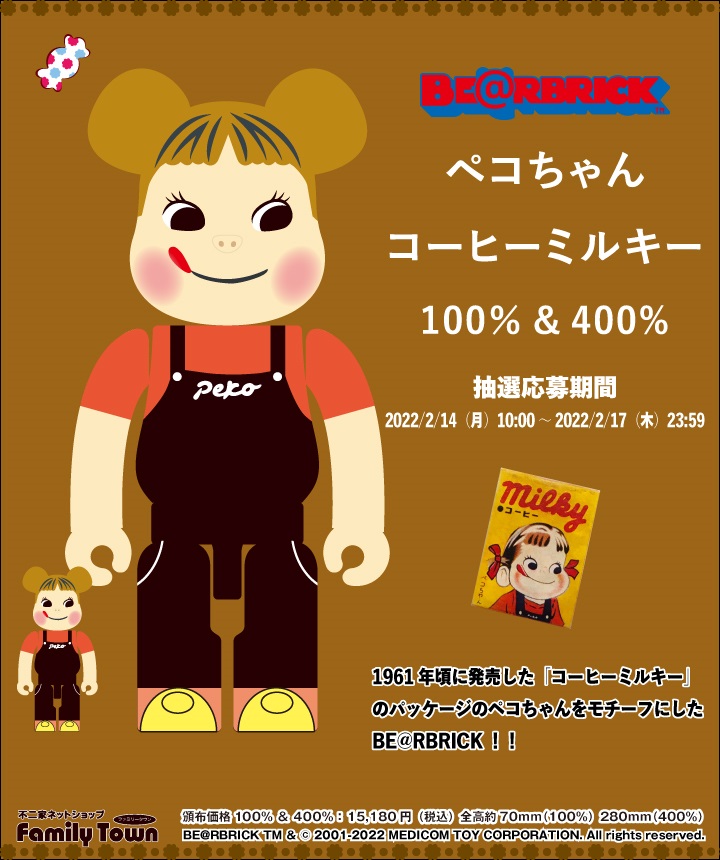 ペコちゃんがアクションフィギュア「BE@RBRICK」の特大サイズに! 不二家ネットショップにて抽選応募が開始(1/6)