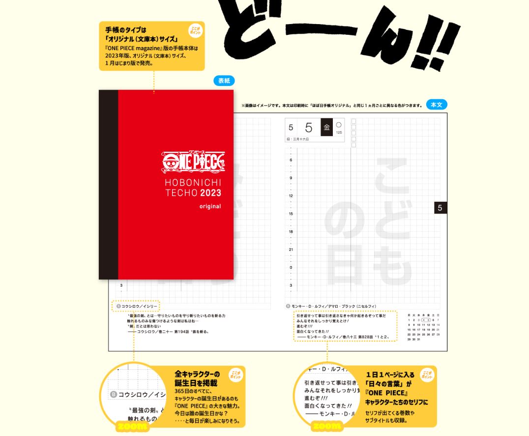 ルフィたちの誕生日も網羅! 「ONE PIECE magazine × ほぼ日手帳」発売決定(2/3)