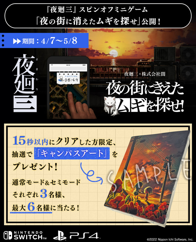 「夜廻三」公式サイトにて、スピンオフミニゲーム「夜の街に消えたムギを探せ!」公開(1/6)