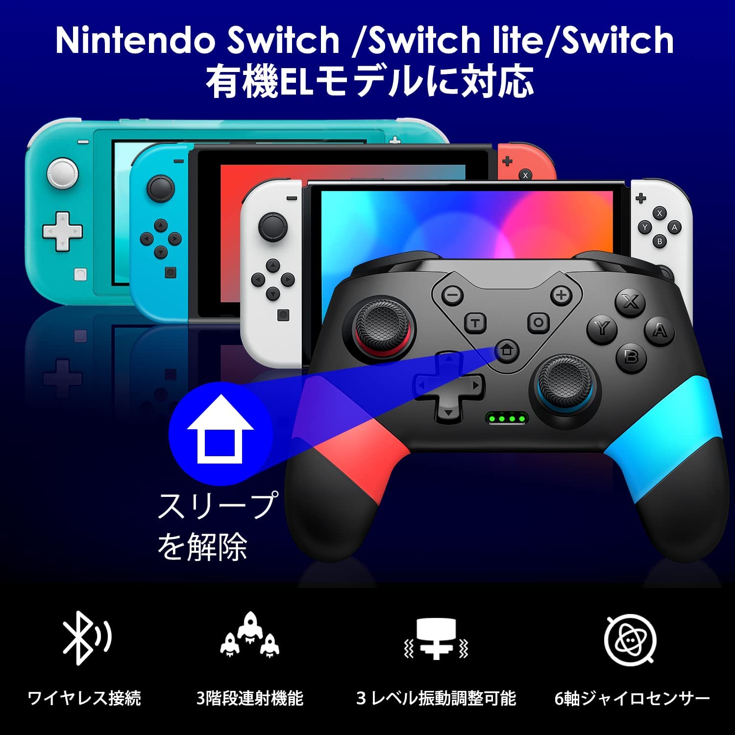 • Switch コントローラー 【2022新型 プログラム編集機能】スイッチ コントローラー プログラム編集/スリープ解除/6軸ジャイロ/振動/TURBO連射機能/背面ボタン搭載 Switch/Switch Lite/ Switch Oled /PCに対応 無線 有線 Switch プロコン 有機ELモデル対応
