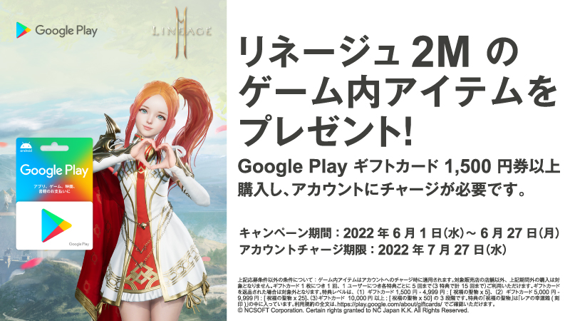 「リネージュ2M」のアイテムがプレゼント! ミニストップ、Google Play ギフトカードのキャンペーンを開催(1/1)