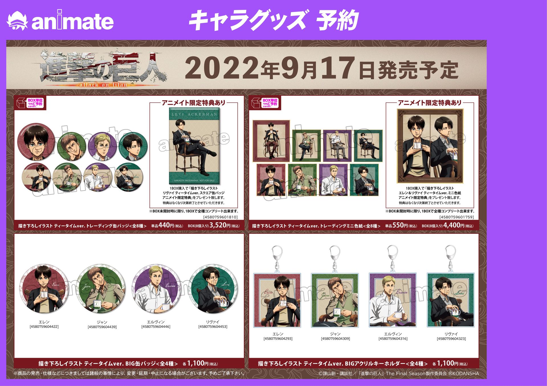 「『進撃の巨人』~兵士たちのティータイム~ in アニメイト」開催決定(2/9)