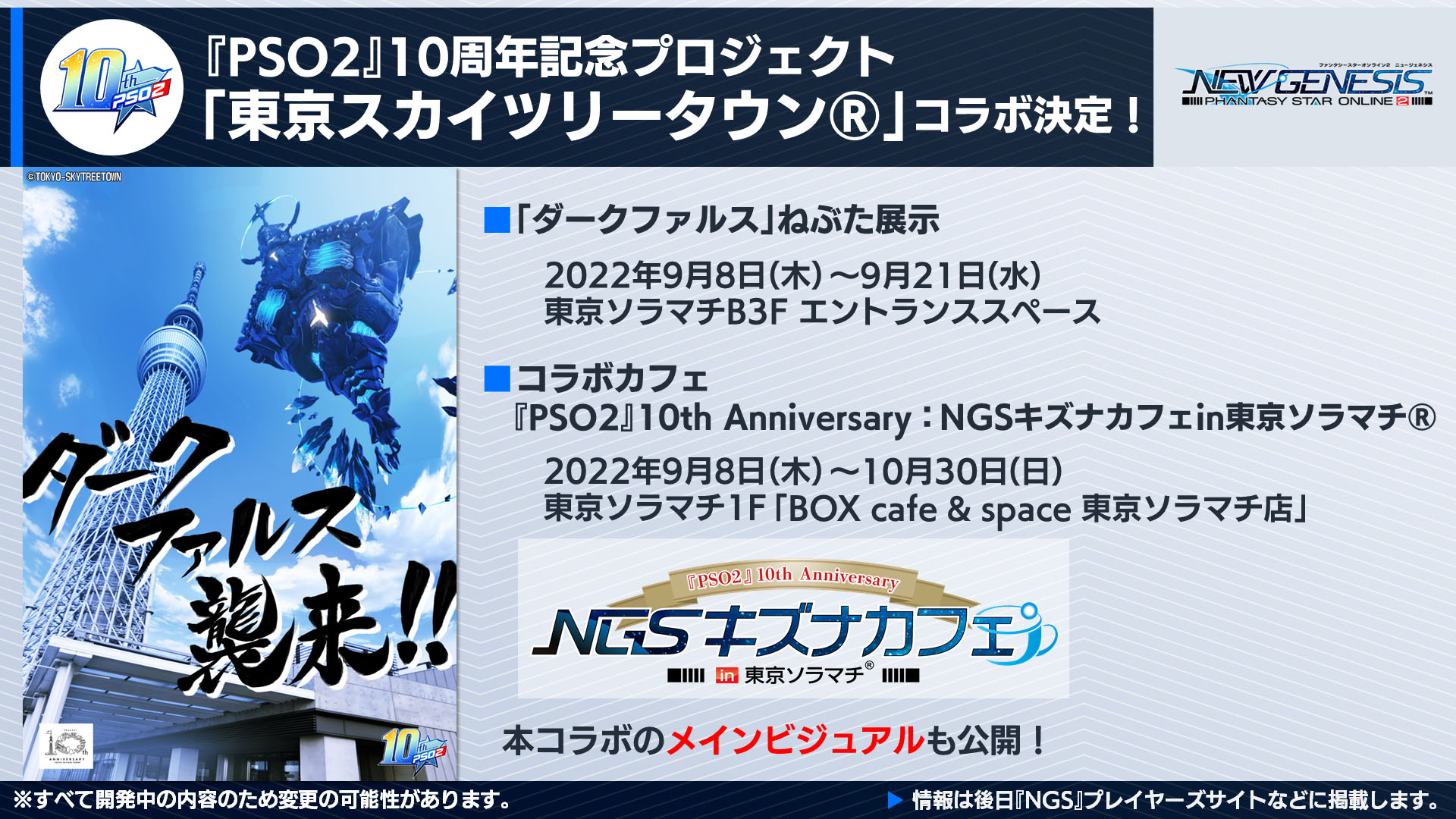 「PSO2 ニュージェネシス」、「東京スカイツリータウン」とのコラボカフェや9月のアップデート情報などを公開(2/27)