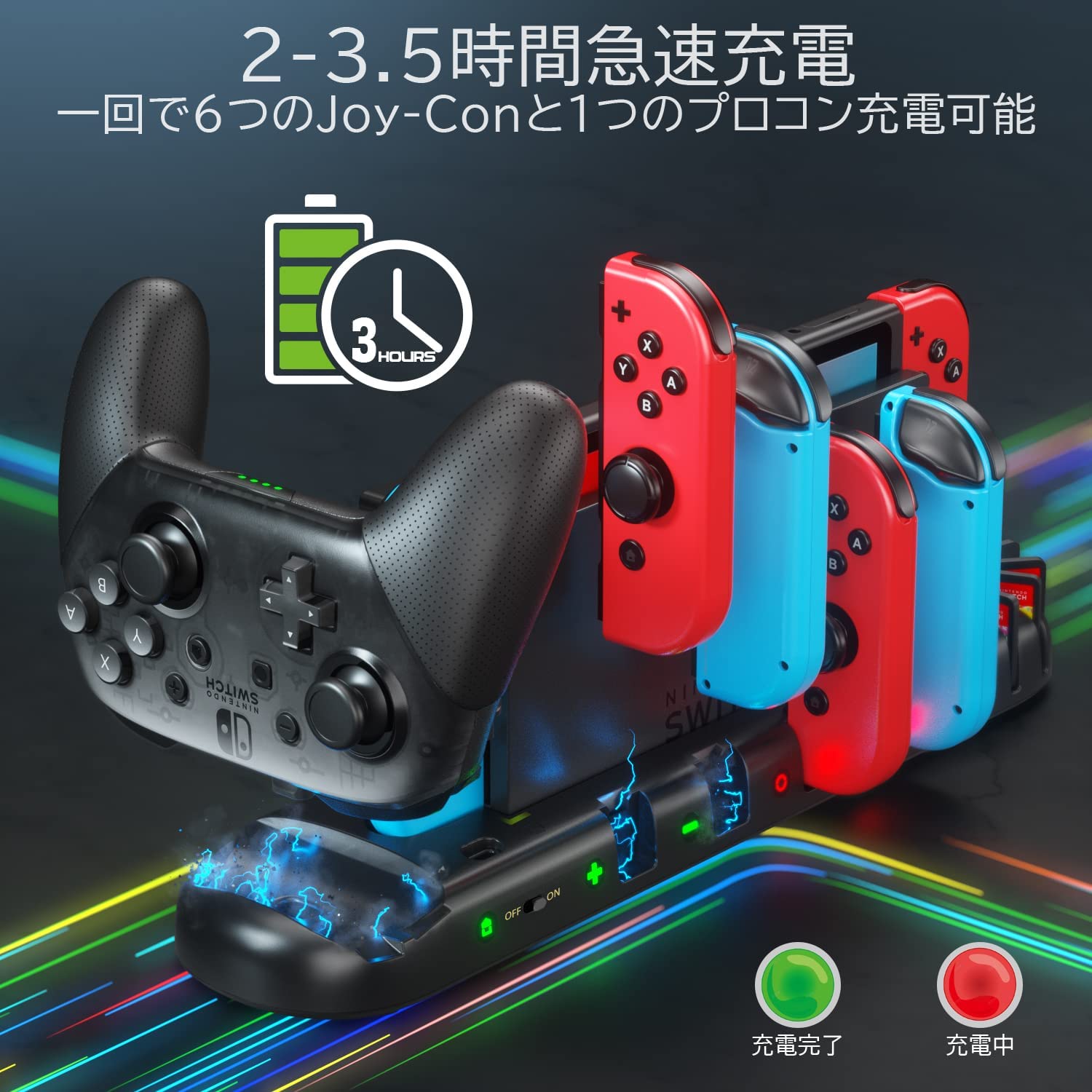 ジョイコン Joy-Con 充電スタンド KDD Switch OLEDコントローラー充電 一体型 急速充電 充電指示ランプ付き ジョイコン充電器 ゲームカード収納Switch ジョイコン プロコン 充電スタンド OIVO スイッチコントローラー充電 一体型 急速充電 充電指示ランプ付 収納 Switch有機EL Joy-Con充電器