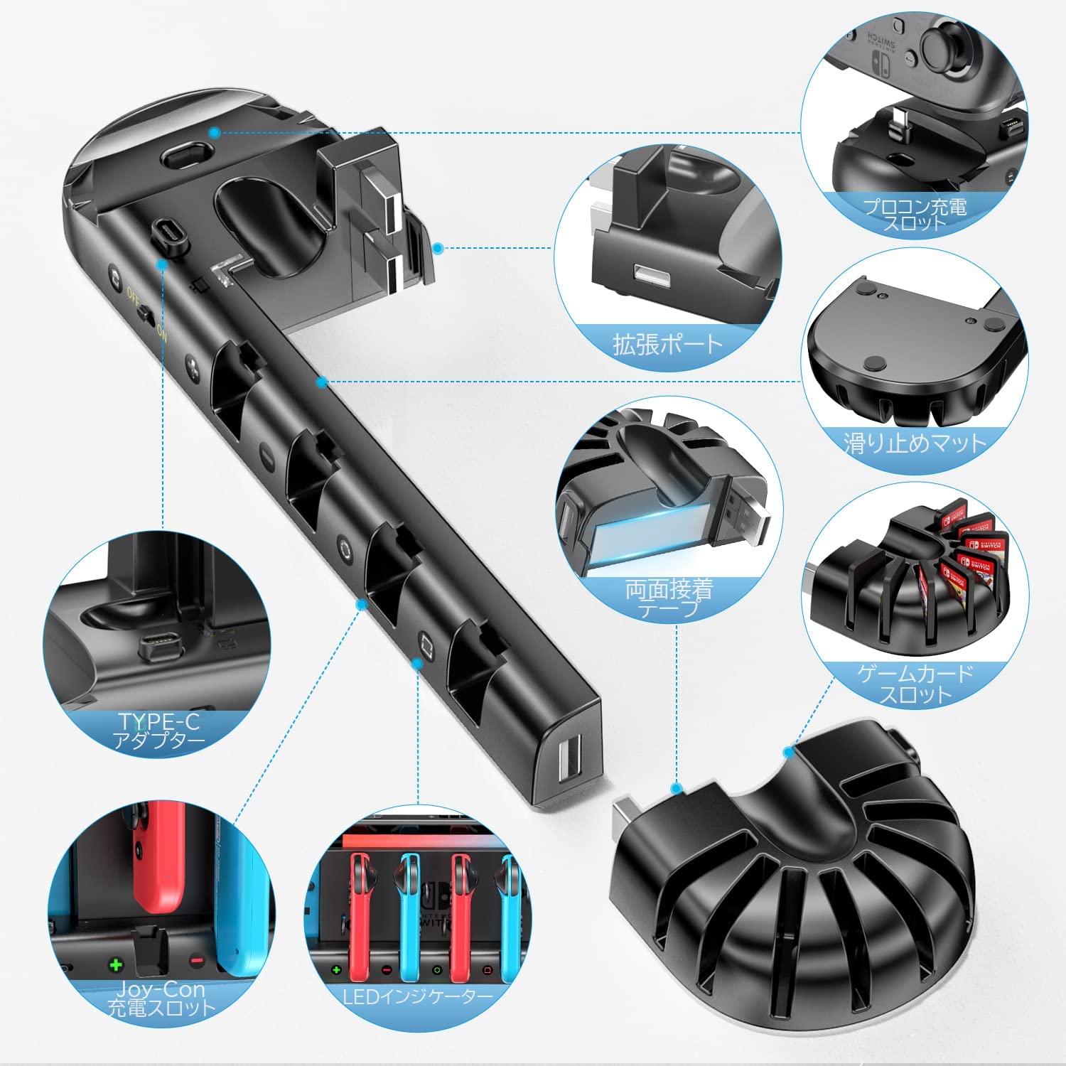 ジョイコン Joy-Con 充電スタンド KDD Switch OLEDコントローラー充電 一体型 急速充電 充電指示ランプ付き ジョイコン充電器 ゲームカード収納Switch ジョイコン プロコン 充電スタンド OIVO スイッチコントローラー充電 一体型 急速充電 充電指示ランプ付 収納 Switch有機EL Joy-Con充電器